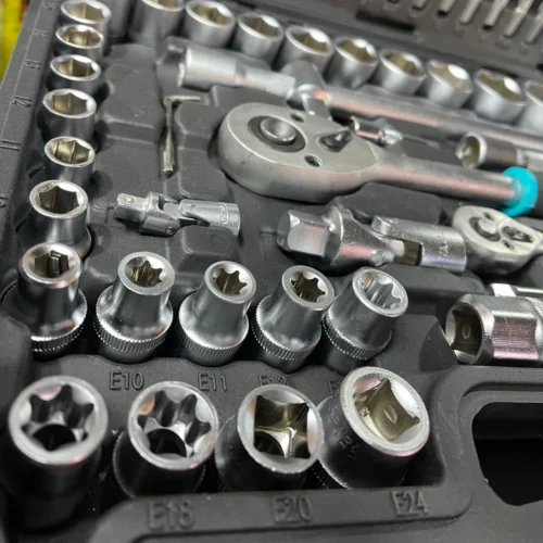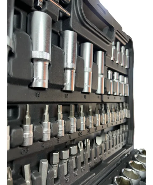- Versátil y completo, ideal para uso profesional y doméstico. Incluye criques, dados, puntas y accesorios en un resistente maletín plástico con cierre seguro. Fabricado en acero cromado de alta calidad para máxima durabilidad y resistencia a la corrosión. ¡Todo lo que necesitas en un solo kit!